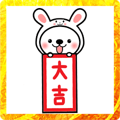お正月に使える新年のご挨拶スタンプです。(2023年干支のうさぎの被り物・2022年干支とらの被り物をしたくまちゃんの年末年始のご挨拶・日常スタンプ入り)※2023/1/3(火)23:59までに購入すると特典「LINEおみくじ」がもらえます。kotori より発売
