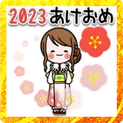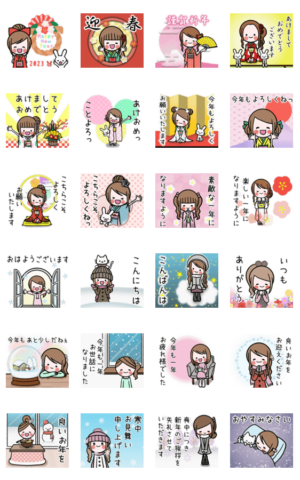 飛び出す女の子達のお正月スタンプ2023 スタンプ画像一覧