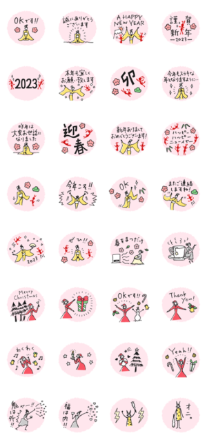年末年始の敬語。クリスマス、新年着物のお正月、春の節分で使えるシンプルかわいいご挨拶セットうさぎ付き。大人も女の子も可愛いが大好き!2023干支卯年を楽しみましょ!※2023/1/3(火)23:59までに購入すると特典「LINEおみくじ」がもらえます。チームトラ より発売