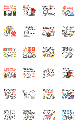 しょぼいねこのあけおめスタンプです 正月 あけおめ 年末年始 2023 年賀状 猫年※2023/1/3(火)23:59までに購入すると特典「LINEおみくじ」がもらえます。YOSHIDA より発売