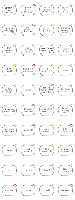 シンプルな吹き出しのあいさつスタンプです。※2023/1/3(火)23:59までに購入すると特典「LINEおみくじ」がもらえます。