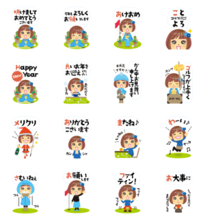ゴルフ女子の楽しい年末年始のスタンプです。