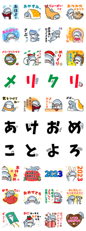 生活感のあるサメのスタンプ第6弾です。冬の日常生活に使えるサメのスタンプです★クリスマス、お正月、節分、バレンタインなどのイベントにも大活躍します。※2023/1/3(火)23:59までに購入すると特典「LINEおみくじ」がもらえます。ゆのもりそら より発売