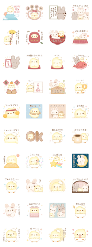 ぴよりびよりに登場するひよこの妖精・ぴよりとお友達のうさぎさんのスタンプです!ひよこ、うさぎ好きの方におすすめです♪ 敬語/年末年始/干支/お正月/冬/うさぎ/ひよこ※2023/1/3(火)23:59までに購入すると特典「LINEおみくじ」がもらえます。歩鳥ととり より発売