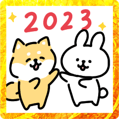 ゆるい柴犬とうさぎの2023年お正月あけおめスタンプです。日常で使えるスタンプ入り。※2023/1/3(火)23:59までに購入すると特典「LINEおみくじ」がもらえます。