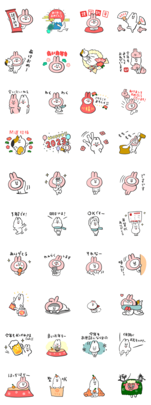 くま吉と新年のごあいさつに使えるお年賀なスタンプ。2023年度・卯年版です!※2023/1/3(火)23:59までに購入すると特典「LINEおみくじ」がもらえます。