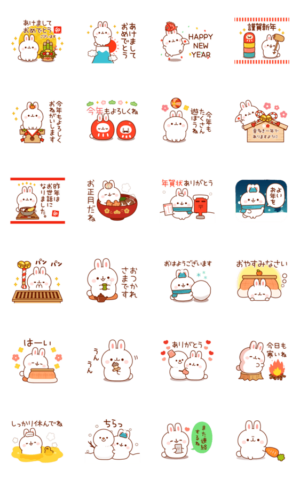 友達や親戚家族、恋人に♪年末年始の挨拶、お正月など、冬の間たくさん使える便利なウサギのスタンプです!