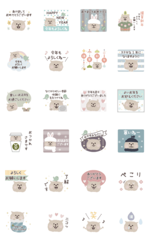 動く♪もけもけのお友達♡お正月 スタンプ画像一覧