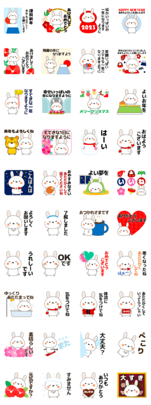 大人の気遣い ウサギ 冬 年末年始 あけおめ スタンプ画像一覧