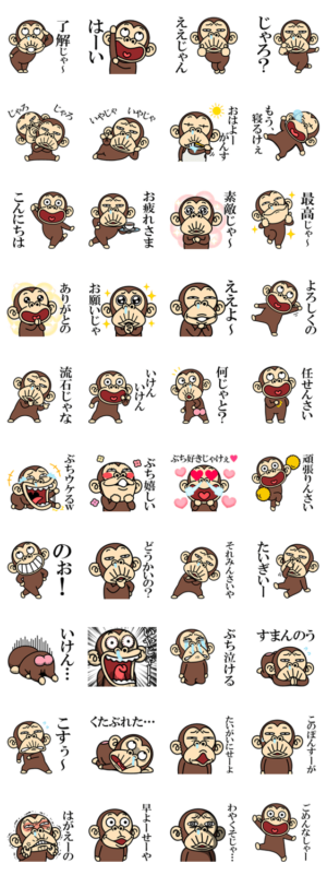 イラッとお猿さんのよく使う【広島弁】を集めた便利なスタンプセットじゃ。セイコウ より発売