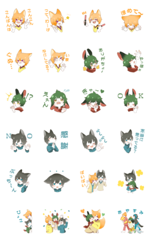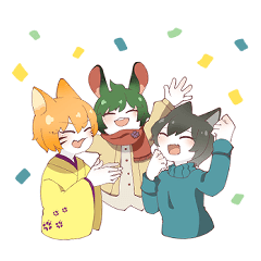 かわいいケモ耳っこ3人組をテーマにしたスタンプ。ケモ耳属性が好きな方に。