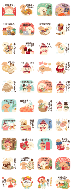 甘さ控えめ大人かわいいふわもこのトイプードル冬♪毎日のあいさつにずっと使える!気づかい、敬語や挨拶あり。 家族、ママ友、イヌ、クリスマス、年末年始、正月
