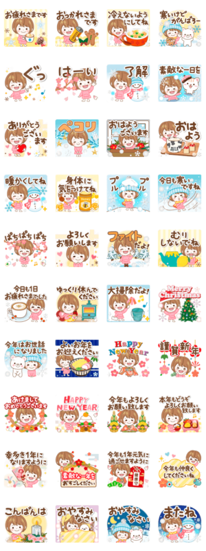 年末年始はバラエティ豊富で様々な言葉で華やかなお正月を迎えられますように制作いたしました。冬の日常も、雪景色と共に女の子が優しく気遣います。クリスマスにも。little lion house より発売