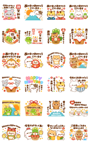 十二支の動物たちが可愛く飛び出す♡お正月・年末年始に大活躍♡明るくカラフルなスタンプです。ぴよたぬき♡ より発売