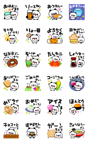 わんぱくパンダの可愛い食べ物系ダジャレスタンプ!背景が動くよ~♪