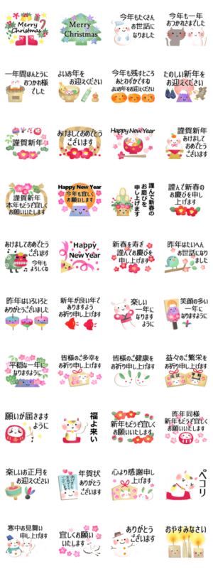 ほっこり冬のご挨拶、クリスマスや年末年始(年賀状)に便利なずっと使えるスタンプです。文字が大きくて見やすいシンプルで大人かわいい40個。心をこめて贈ります。Konko3 より発売