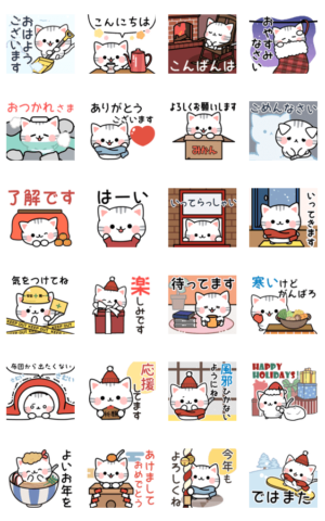 アメリカンショートヘアーのあめちゃんの冬スタンプです♪クリスマスやお正月も入ってるのでこれからの季節に大活躍まちがいなし!DECOR より発売
