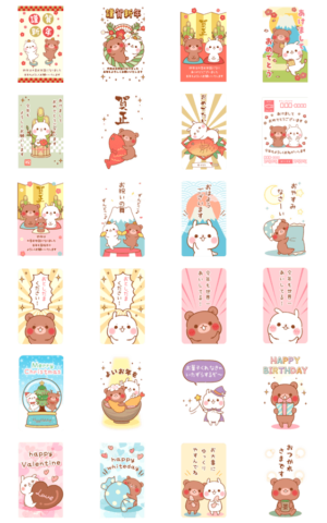 ちびうさ&ちびくまの大きくて見やすいBIGスタンプ! 敬語多めで使いやすい♪年末年始やお正月の挨拶を中心に、 誕生日/ハロウィン/Xmas/バレンタイン他色んな行事入り☆ ※このスタンプはトークルームで大きく表示されるBIGスタンプです。ジェリーフィッシュ より発売