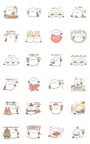 もちもちなシマエナガの年中使える言葉がたくさんつまったスタンプです。挨拶、行事、お祝い、年末年始などに便利なスタンプがいっぱい!