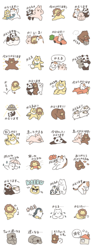 毎日の「今から帰るよ」をゆるい動物たちが伝えてくれます。その日の気分で使い分けて。 (帰宅報告/連絡/家族/ねこ/パンダ/うさぎ/くま)こはるな より発売