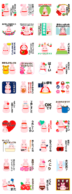 大人気遣い 幸せを呼ぶ招きウサギ 年末年始 スタンプ情報