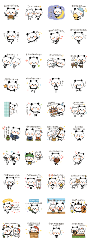 ちょこっと敬語のゆるパンダの年中使えるスタンプです♪挨拶など毎日使える言葉の他、お正月、節分、バレンタイン、父の日、母の日、クリスマス等のイベントにも使えます。