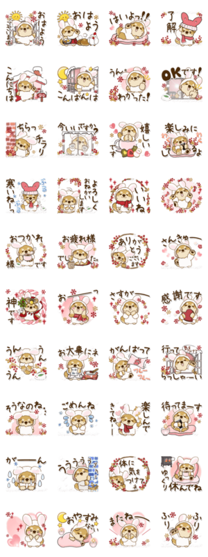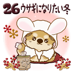 ウサギになりたい茶色い犬のちゃちゃ丸の冬に使えるスタンプです。(柴犬、〇〇犬・・・日本犬のつもりです...)藤花 より発売