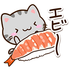 『小さいアメショ』のお寿司等、面白くずっと使える猫スタンプです、アメリカンショートヘアや、キジトラやサバトラネコ等の、ねこが好きな方にぜひ。【かたこ】かたこ より発売