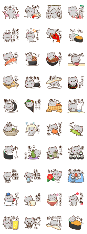 キャラクターが可愛いのはもちろん、お寿司とコラボしたスタンプがたくさんあって珍しくて使いたくなる