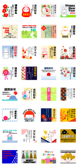 いろんなタイプの見やすい年賀 (挨拶文付) スタンプ画像一覧