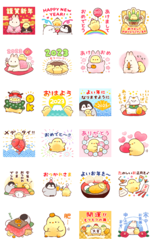 年末年始・お正月にもふもふをどうぞ。2023年は卯年!もふウサギ多めのポップアップスタンプです♪さんぽいも より発売