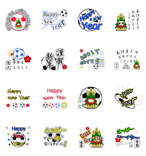 サッカー好き.新年大好きさん用のお正月スタンプ