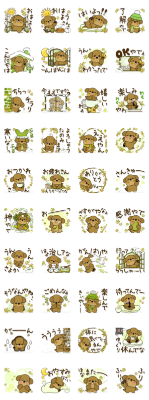プードルちゃんの時々関西弁の冬のスタンプです。藤花 より発売