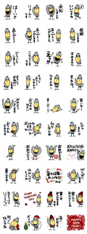 ハシビロコウの一年中毎日使えるスタンプです♪トマト より発売