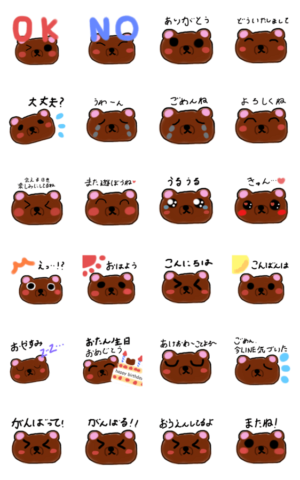 くまさんのスタンプだよ^^スタンプは何個ですか?24個ですそしてLINEコイン50円です✌︎('ω')✌︎よかったら是非是非使ってみてくださいね✌︎╹◡╹✌︎