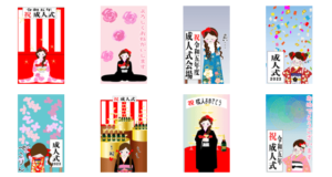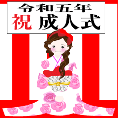 プリンセスになりたいロングヘアの女の子。赤いリボンがお気に入り。2023 成人式 おめでとうございます 20 二十歳 令和5年 振袖 成人 ハタチ はたち ※このスタンプはトークルームで大きく表示されるBIGスタンプです。nae78YAMA より発売