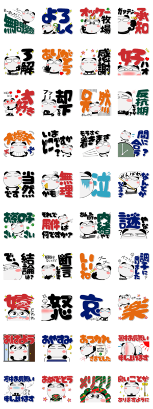 パンダのスタンプ。年中使える言葉を揃えました。ポップでカラフル。デカ文字が見やすい。ぱんだ、パンダ、熊猫。