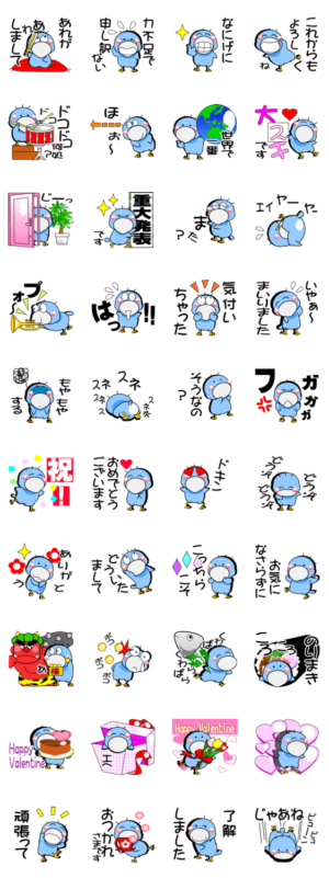 小さなハシビロコウのコウちゃんの楽しくて毎日使いたくなっちゃうちょっと背伸びした大人なスタンプです。節分やヴァレンタインスタンプもあります。