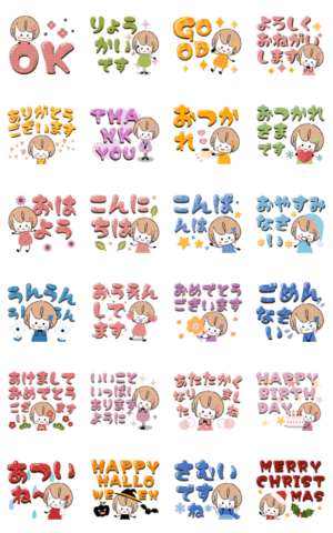 飛び出す♡一年中使えるデカ文字miniガール スタンプ画像一覧