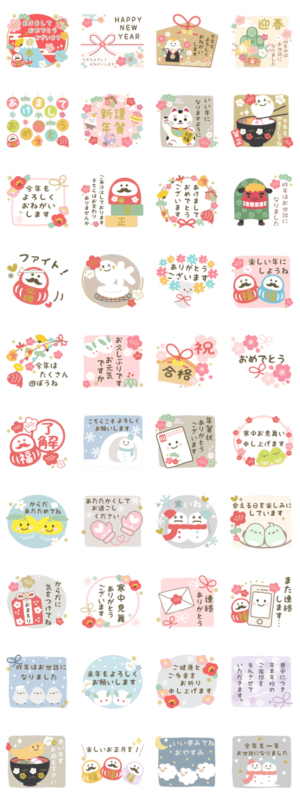 毎年使える!ふんわりくすみカラーの大人の年賀スタンプです。yoshi より発売