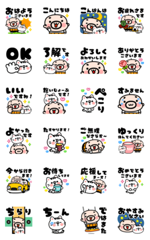 ヒゲのおやじ君とかわいい猫のニャーの飛び出すスタンプ!年中使える挨拶と返事がそろってる敬語スタンプ♪
