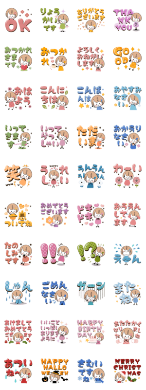 一年中使えるminiガールの見やすいデカ文字スタンプです。
