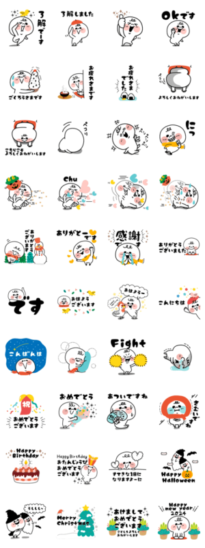 今年365日使える、まるしまさん スタンプ画像一覧