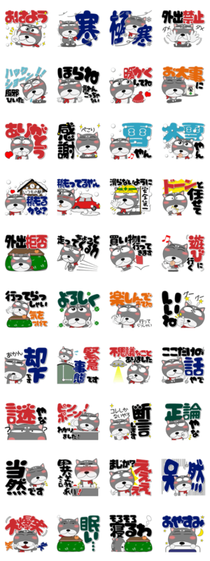 黒い柴犬(しばいぬ、黒柴、くろしば)のスタンプ。冬にぴったりの言葉を揃えました。ポップでカラフル。デカ文字が見やすい。毎日使えるよ。柴犬好きの方へ。