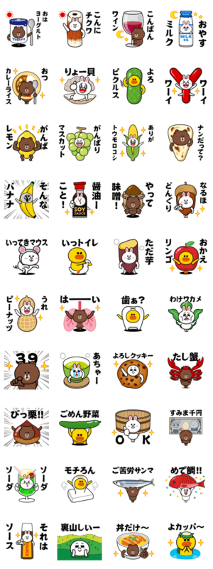 LINEキャラクターズのブラウン、コニー、サリー、ムーン、が登場する。毎日使える、日常会話の大人向けダジャレ・駄洒落挨拶スタンプです。オヤジギャグ満載です。 ※BROWN & FRIENDS をみんなでつくろう!キャンペーン参加スタンプです4A-Studio(よんえーすたじお) より発売