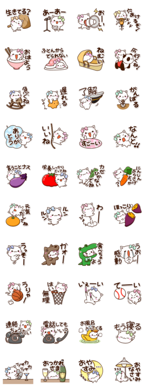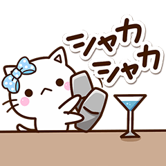 リボンをつけた小さい白猫の『ちびシロ』。おはようからおやすみまである便利なネコスタンプです。明るくかわいい白猫。しろねこ好きな方にぜひ。【かたこ】かたこ より発売