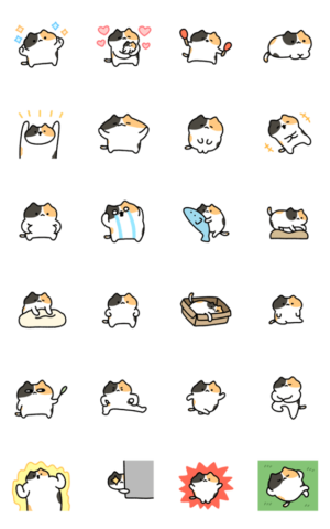 三毛猫の動くスタンプです! ねこ/かわいい/ゆるい/三毛猫/動物うさぎメン より発売