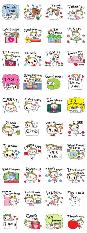 シンプルな日常会話スタンプです。英語スタンプnenerin より発売