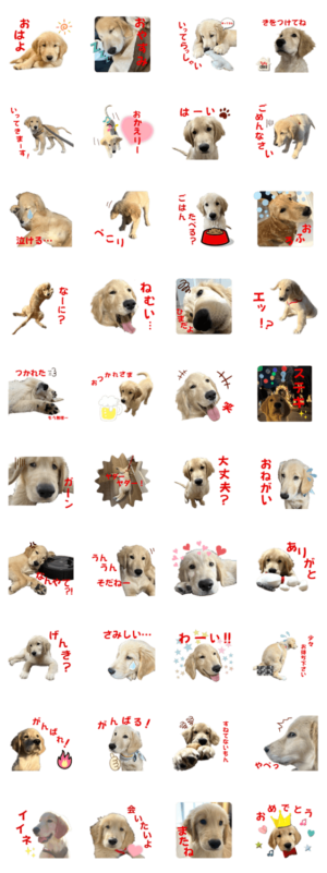 生後4ヶ月のゴールデンレトリバー「らいと」のスタンプです。mikarin より発売