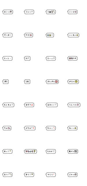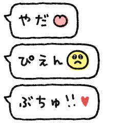 大人可愛い言葉のシンプルな省スペーススタンプ。ひとことぽつりと吹き出しタイプです。ぴえん/了解/いいね/やだ/ぺこり/笑/泣/ぷんぷん/作:さあや